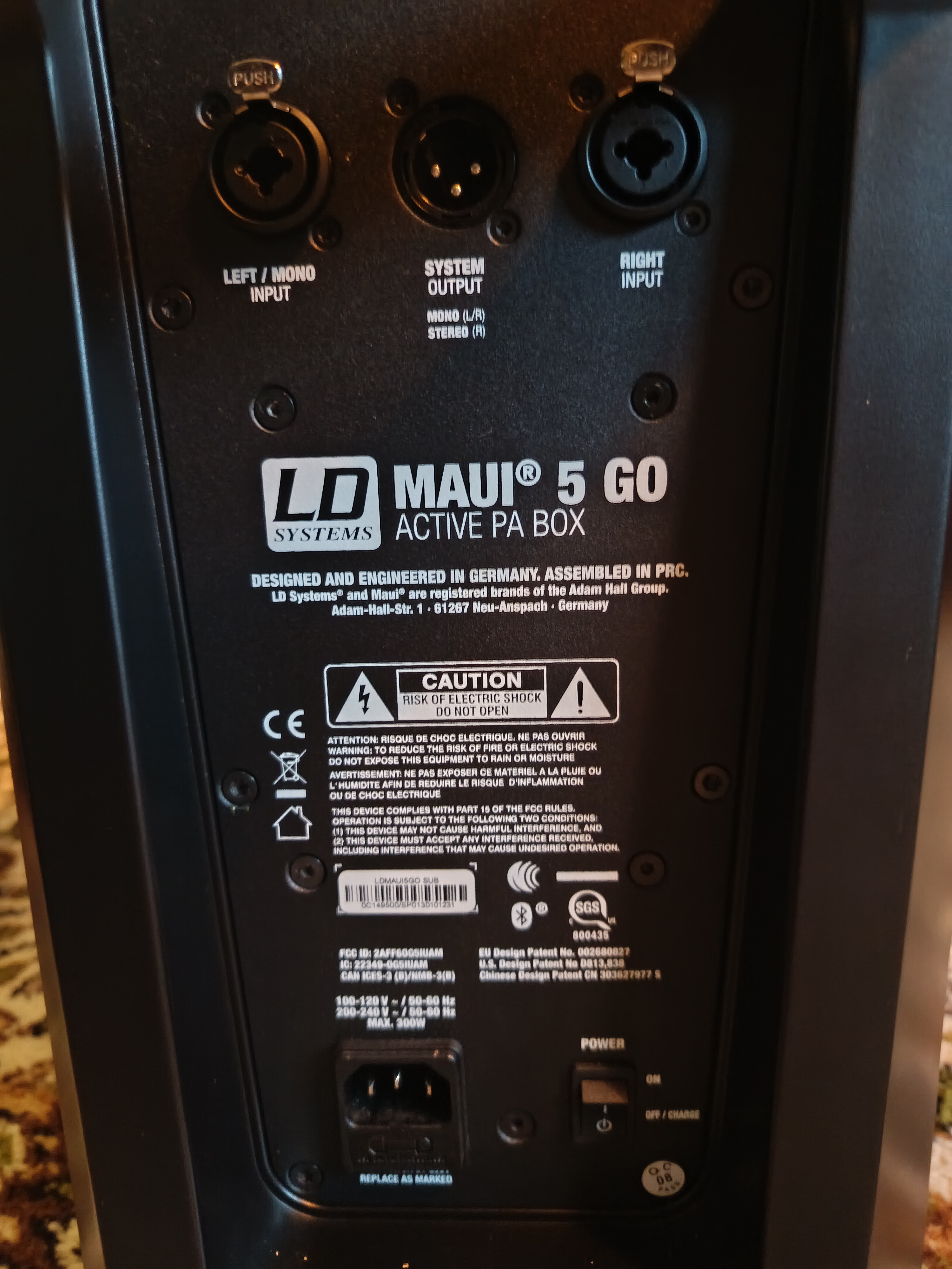 - Inputs: 2 XLR sockets + 1 6.3 jack socket + 1 3.5 jack socket + possibility of connecting an external device via Bluetooth 4.2 (see photos).
